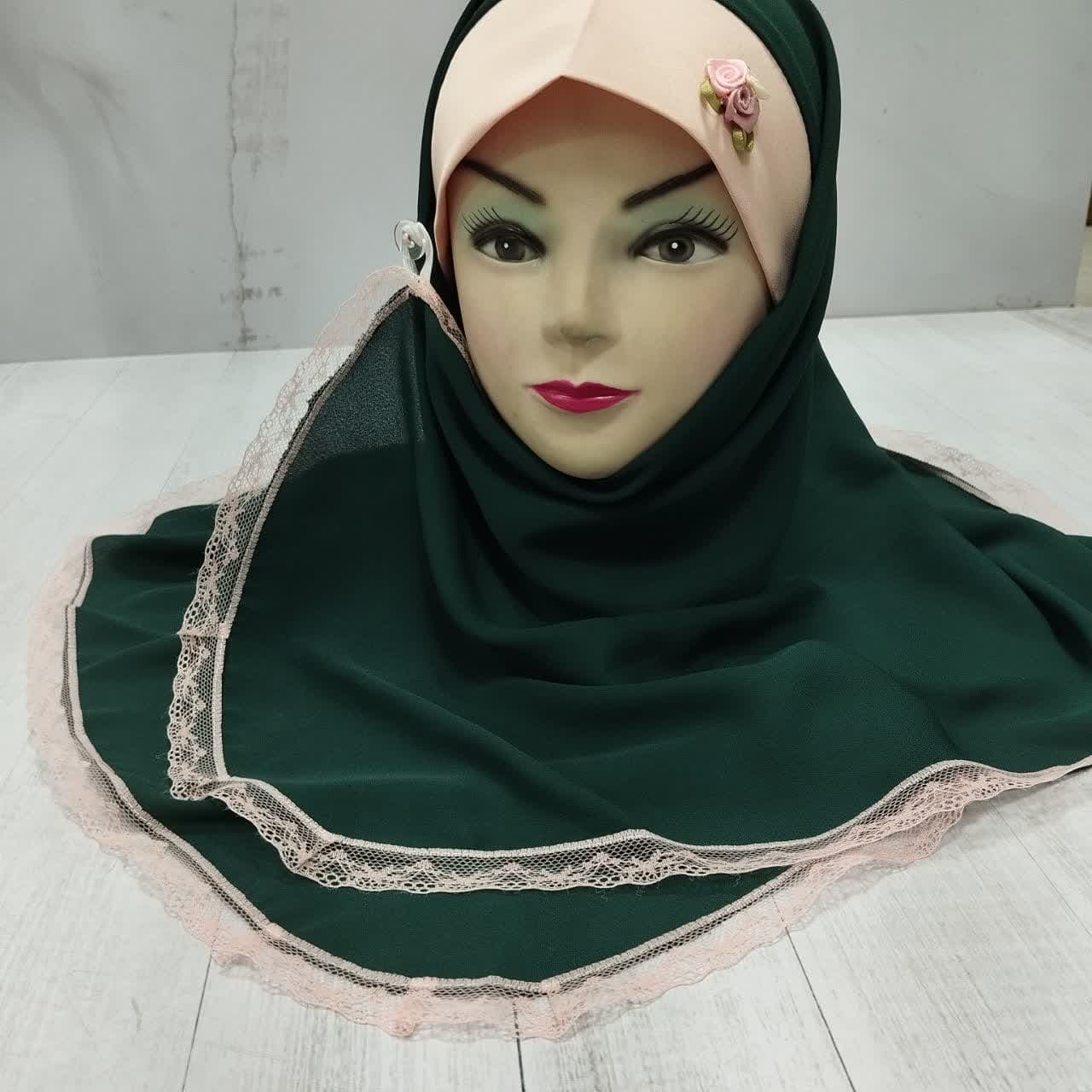 دور مقنعه نوار تور دوزی شده